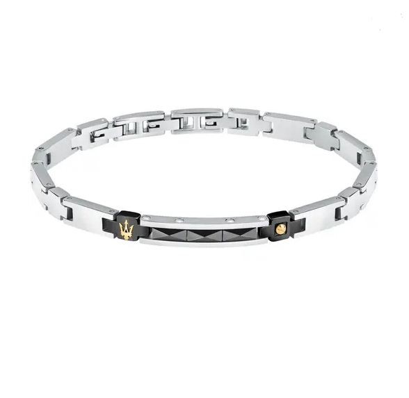 BRACCIALE MASERATI ICONIC - JM324AVD55 - Genere: Uomo, Misura: 18|3.5, Colore: Silver, Dorato, Bluespirit experience: Fashion, Materiale: Acciaio, Peso: 18,600 gr, Certificato di autenticità: Sì, Confezione: Originale Maserati